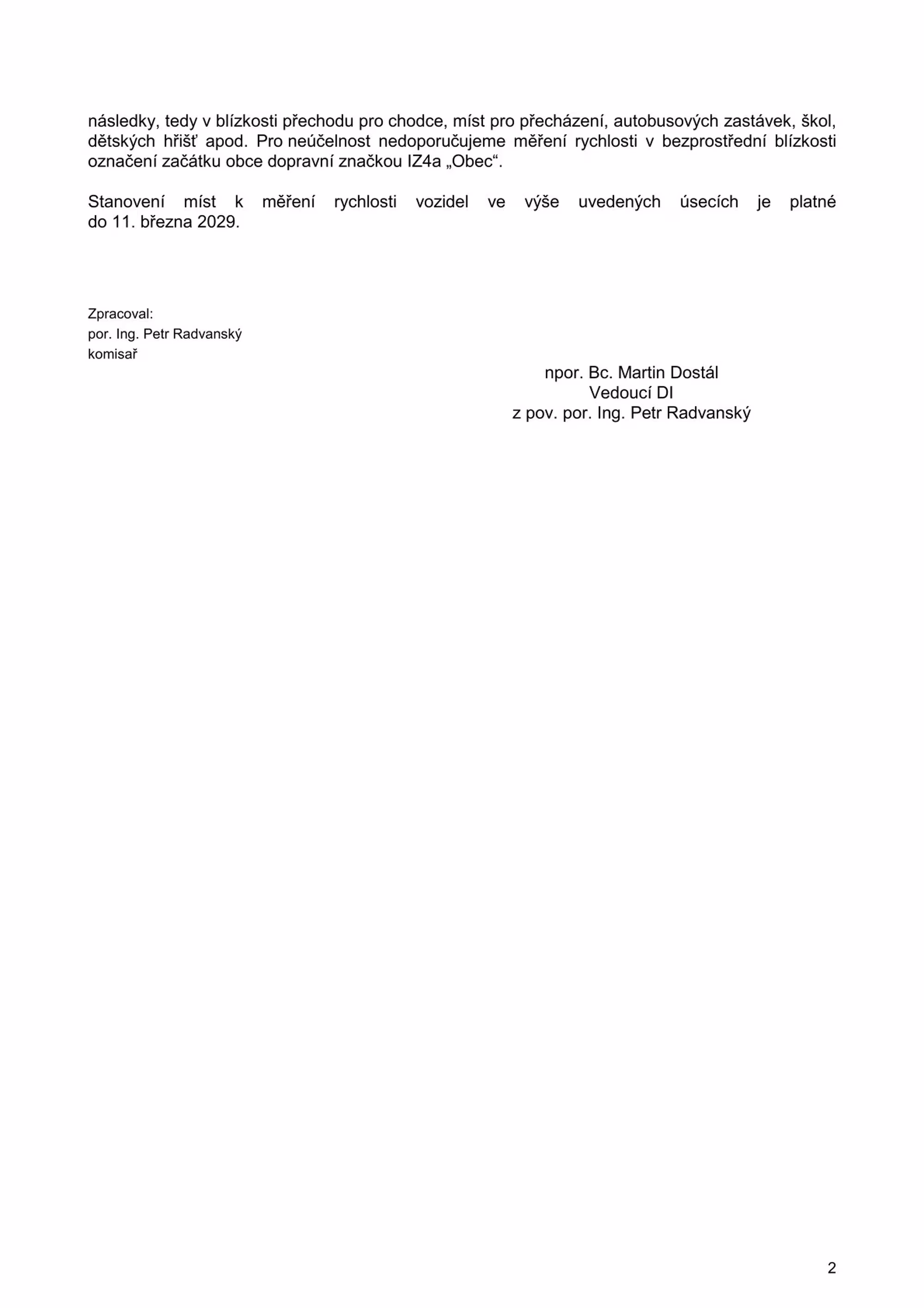 - ul. Jižní, silnice II/570 – v místech přechodu pro chodce, autobusových zastávek a hřiště mezi křižovatkami s ulicí Dykova a Schweitzerova