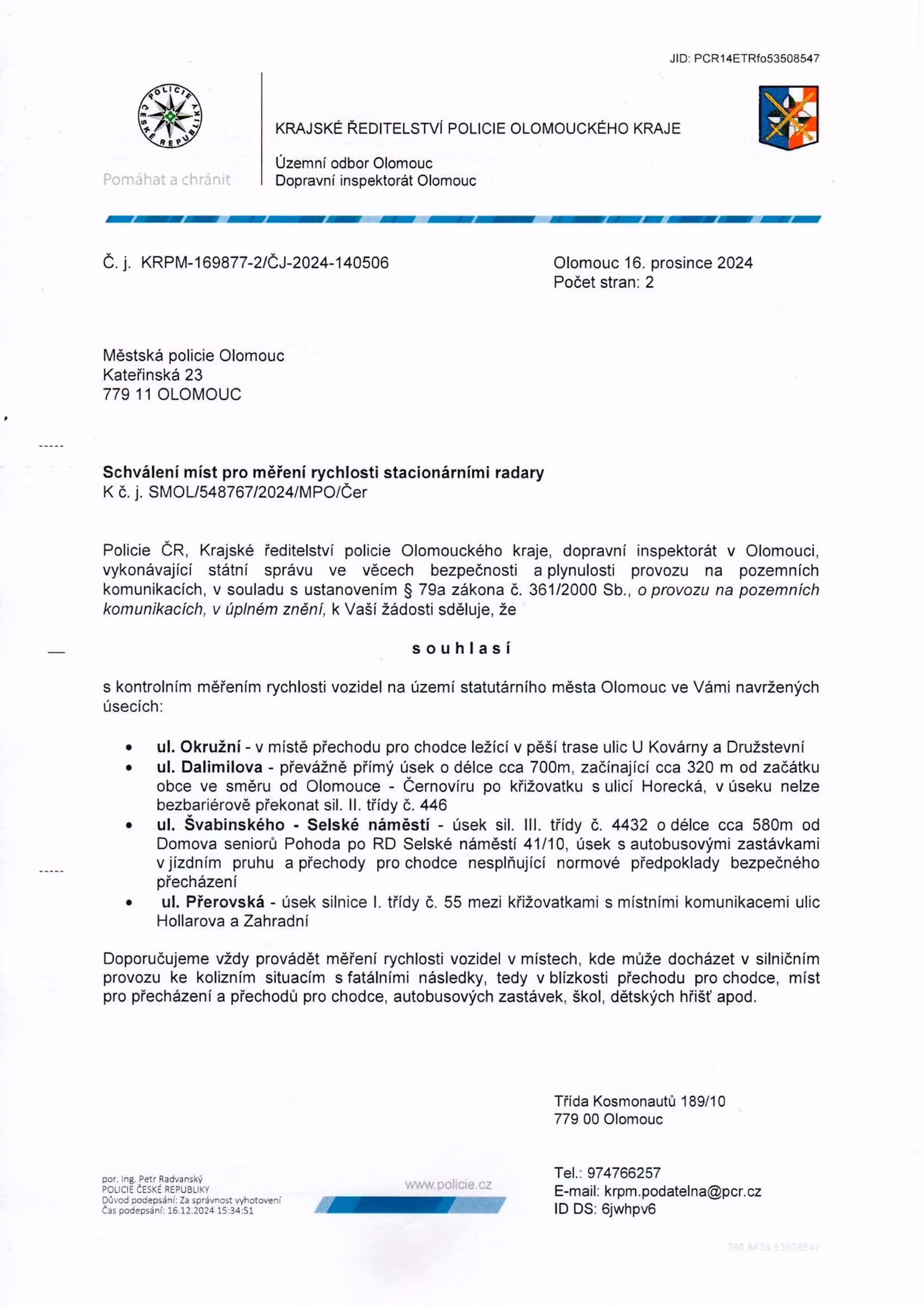 Měřící zařízení na místech schválených Policií České republiky umožňuje úsekové měření rychlosti vozidel i okamžité měření rychlosti vozidel.