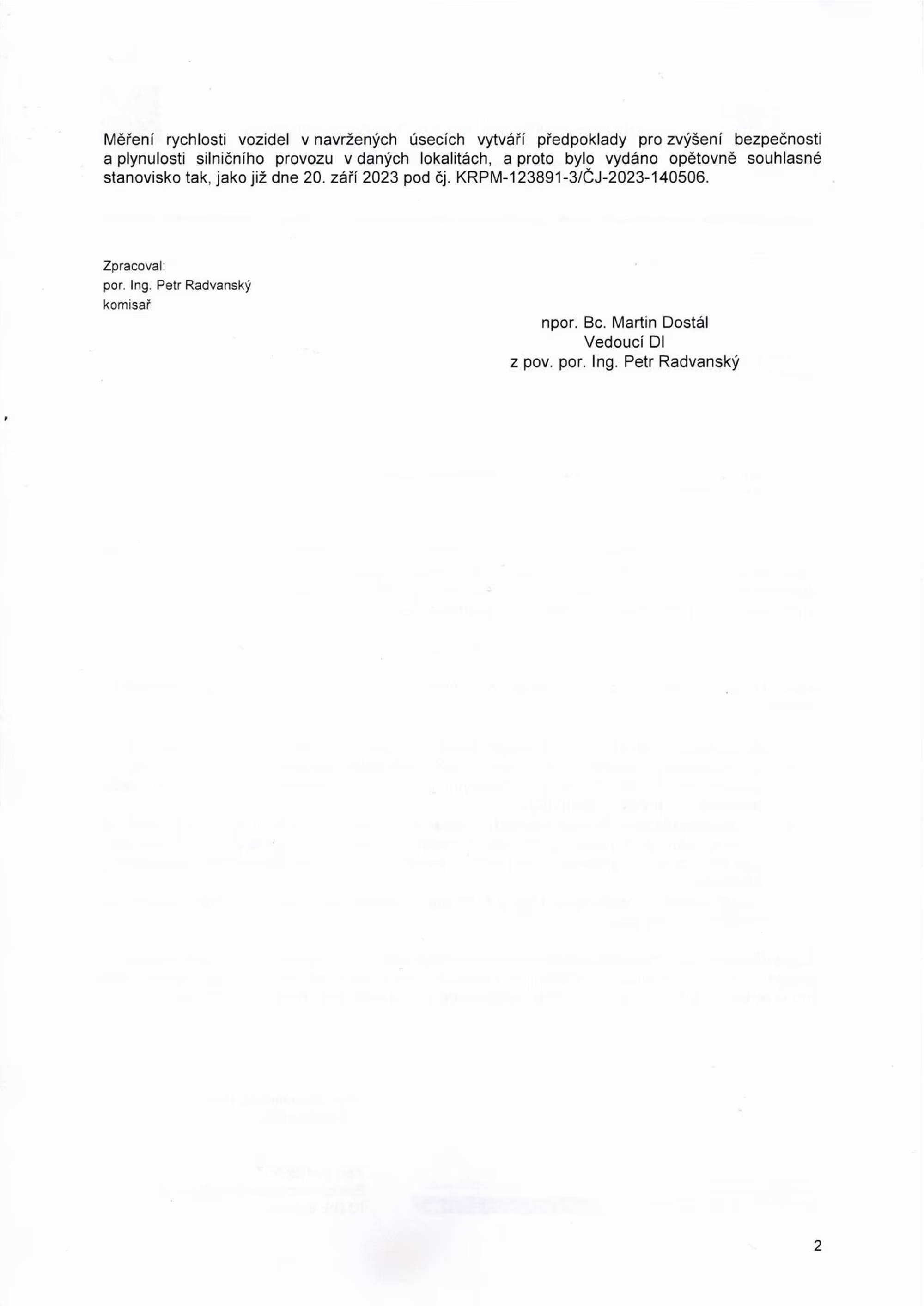 - ul. Okružní – v místě přechodu pro chodce ležící v pěší trase ulic U Kovárny a Družstevní