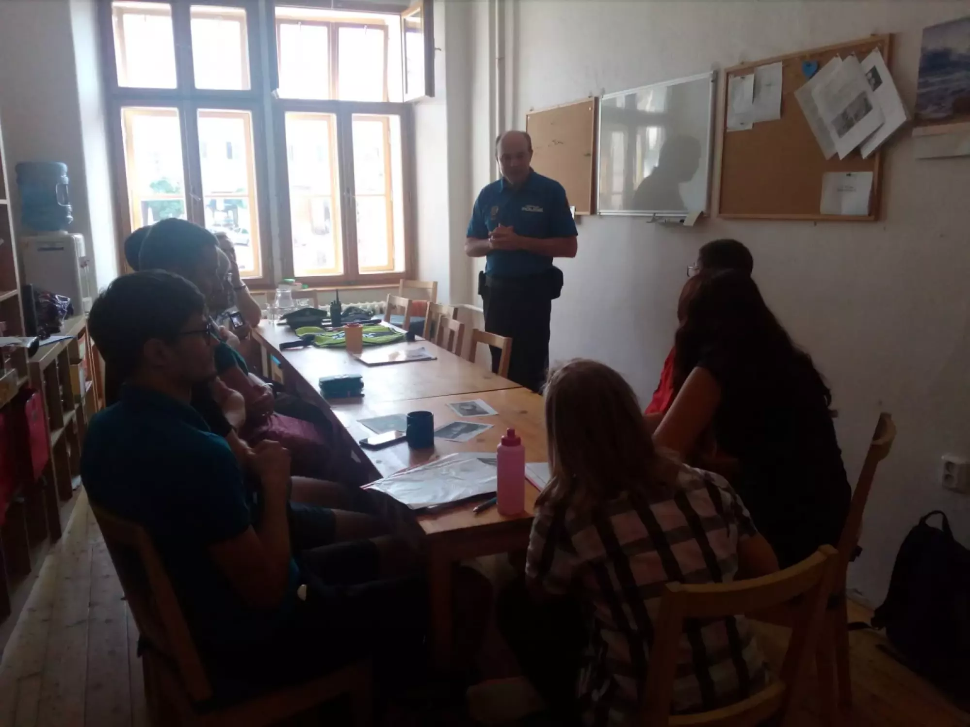 Strážníci si pro klienty připravili besedu zejména na téma osobního bezpečí, ale také odpovídali na mnoho zvídavých dotazů z oblasti náplně práce strážníka. Na konci každý ze zúčastněných obdržel drobnou pozornost v podobě reflexní pásku. (Čun)