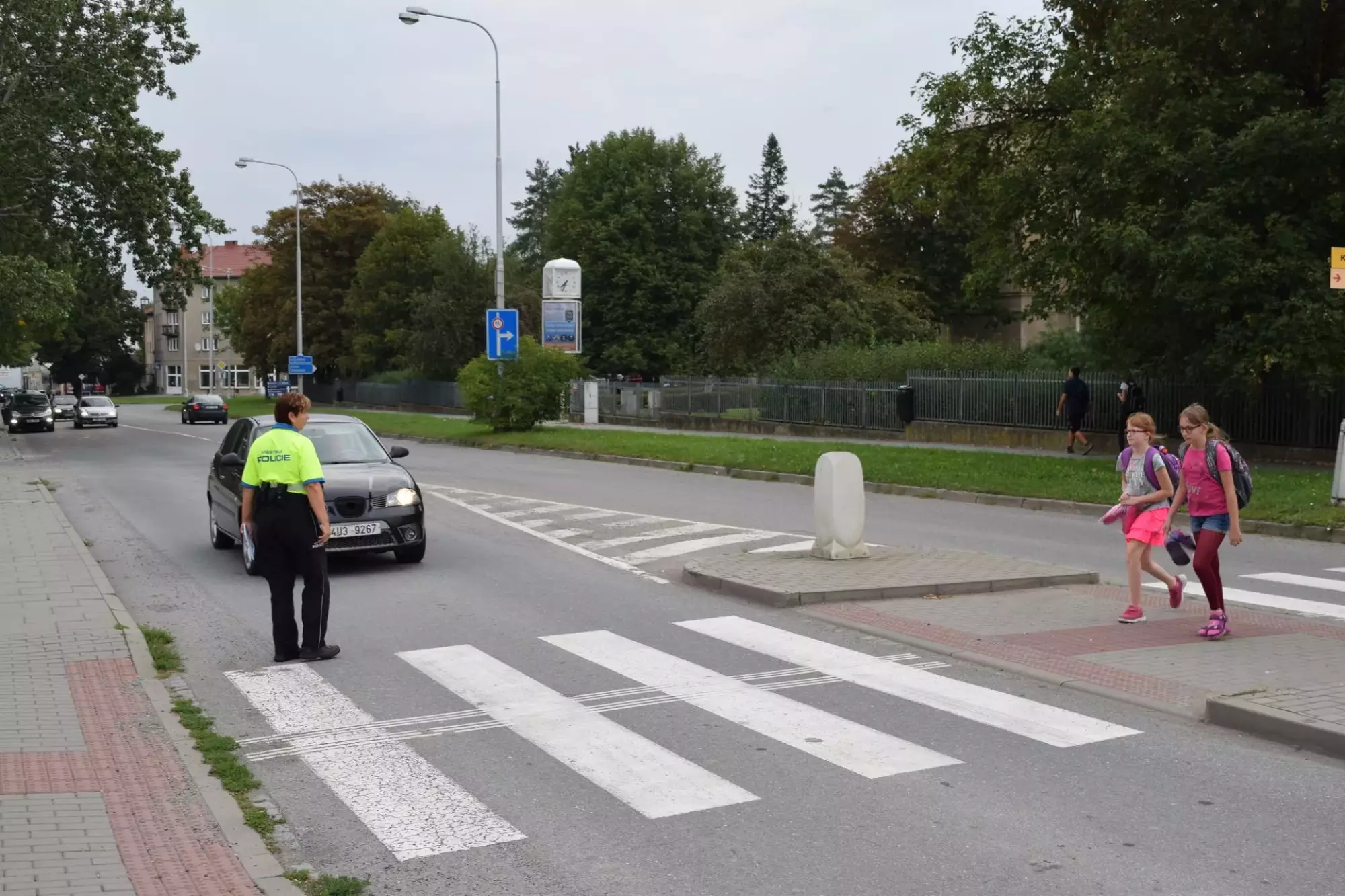 Po celý školní rok vykonávají strážníci dohled u školských zařízení, která se nacházejí v blízkosti frekventovaných pozemních komunikací, zastavují před přechody pro chodce přijíždějící vozidla a tím umožňují dětem bezpečné přejití přes vozovku při cestě do školy i ze školy.