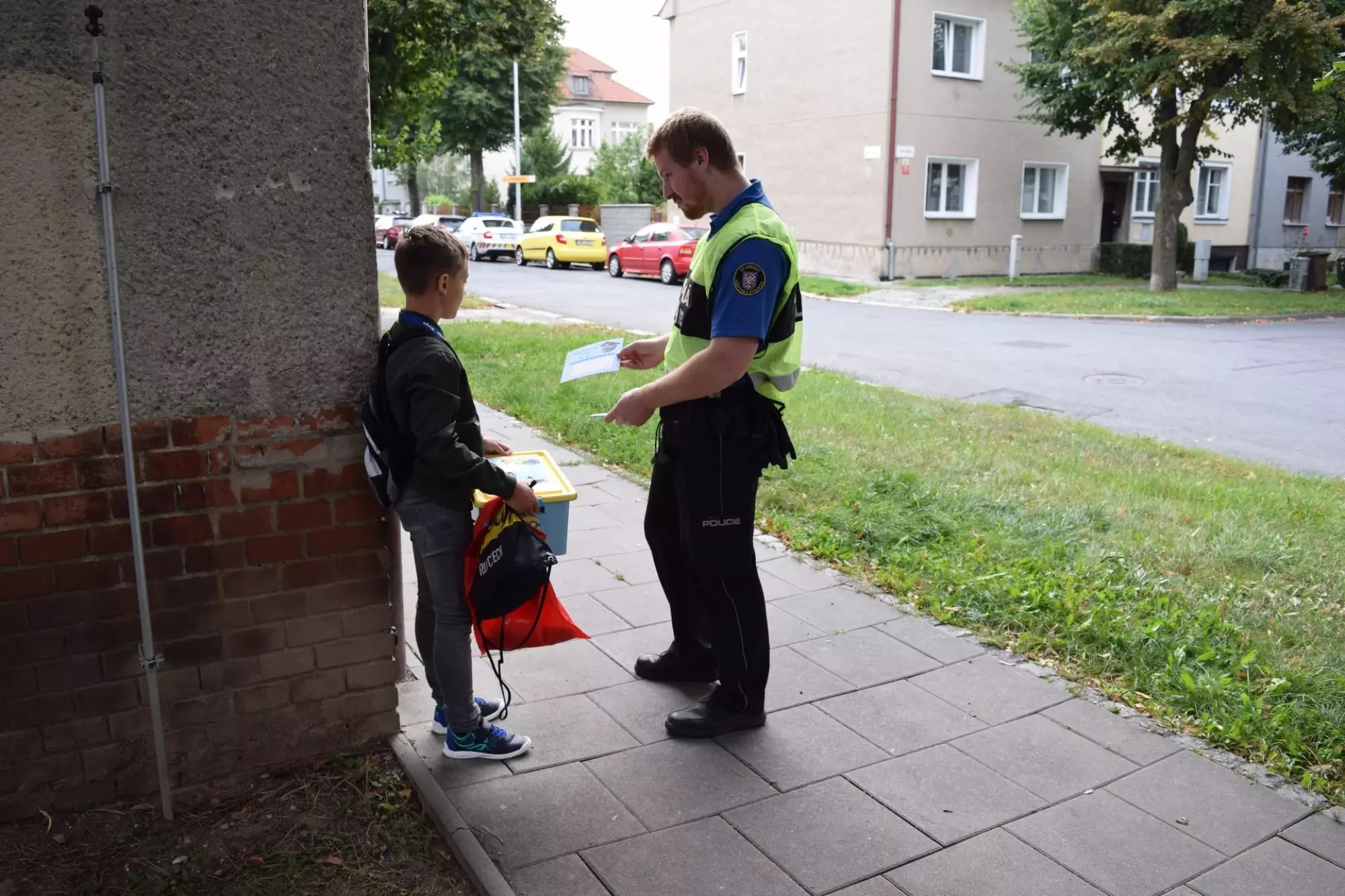 Stejně tomu bylo i v pondělí druhého září, tedy v první školní den. Strážníci školákům připomínali zásady bezpečného chování v silničním provozu, zejména v souvislosti s přecházením vozovky. Jako pozornost k začátku školního roku děti obdržely rozvrh hodin s policejní tématikou.
