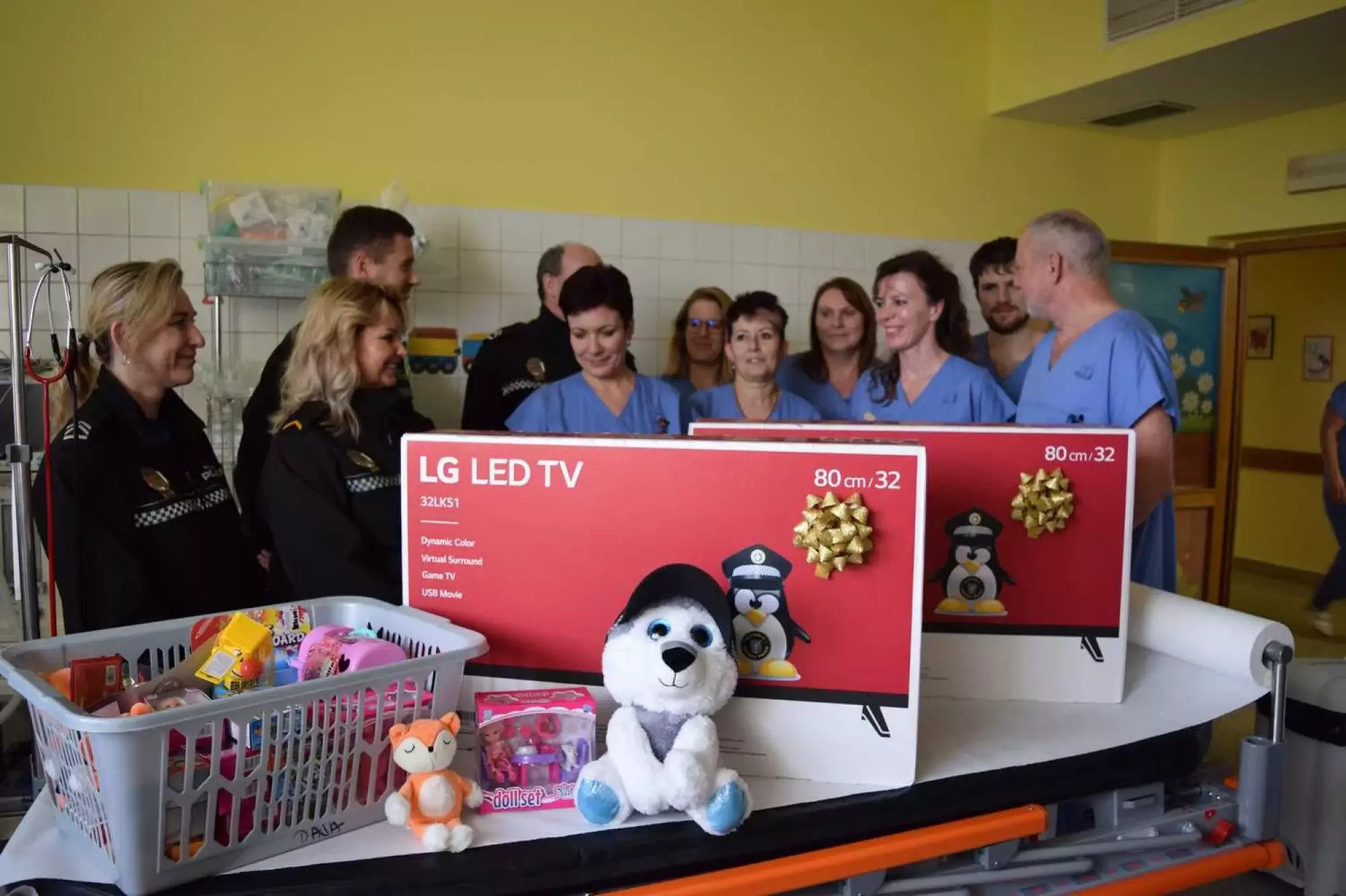 Strážníci a zaměstnanci Městské policie Olomouc mezi sebou vybrali částku rovných 10 000,- Kč, za které se koupily dvě televize, hry, plyšáci a další hračky, aby se malým pacientům zpříjemnil pobyt v nemocnici před nadcházejícími vánočními svátky. I mezi strážníky se najdou muži a ženy, kteří mají osobní zkušenost, kdy jejich rodinní příslušníci potřebovali pomoc a péči tohoto oddělení, a právě proto jsme se rozhodli podpořit konkrétní oddělení Fakultní nemocnice Olomouc. (Čun)