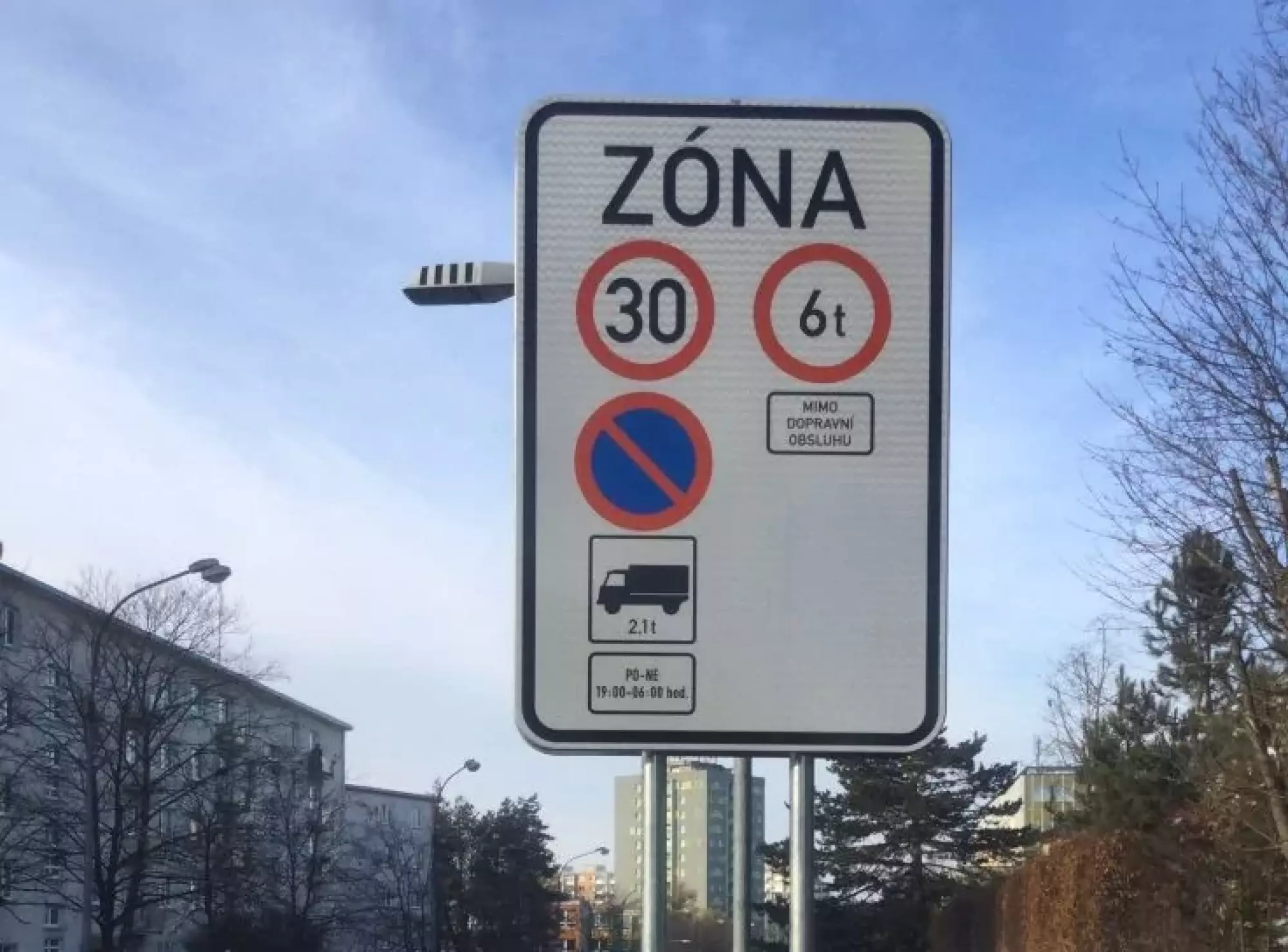 Zákaz státní v této zóně platí pro nákladní automobily Po – Pá od 19:00 do 06:00 hodin, jejichž největší povolená hmotnost přesahuje 2,1 tun.