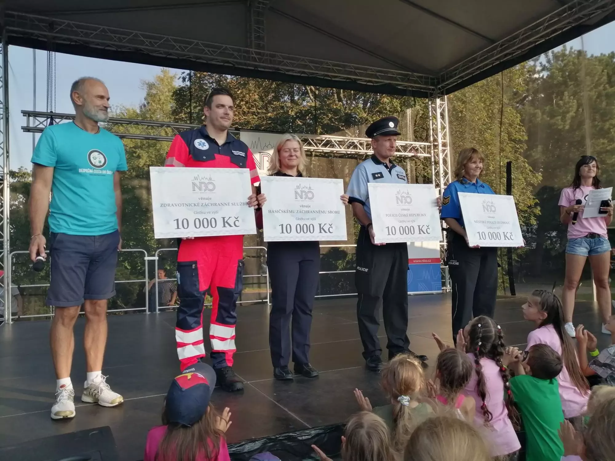 Odpolední program byl plný nejen ukázek volnočasových aktivit, ale zejména ukázek z činnosti složek Integrovaného záchranného systému. Ve stánku Městské policie Olomouc děti plnily úkoly související zejména s dopravní tématikou, ale také skládaly na rychlost nábojnice, vyzkoušely si poutací trenažér nebo střílely na laserové střelnici. Pro dospěláky byly největším tahákem brýle simulující požití alkoholu a drog a to ve čtyřech variantách. Tradiční závěr celé akce obstaral MUDr. Mgr. Ivan Langer, který předal všem zástupcům zúčastněných složek šeky na deset tisíc korun.