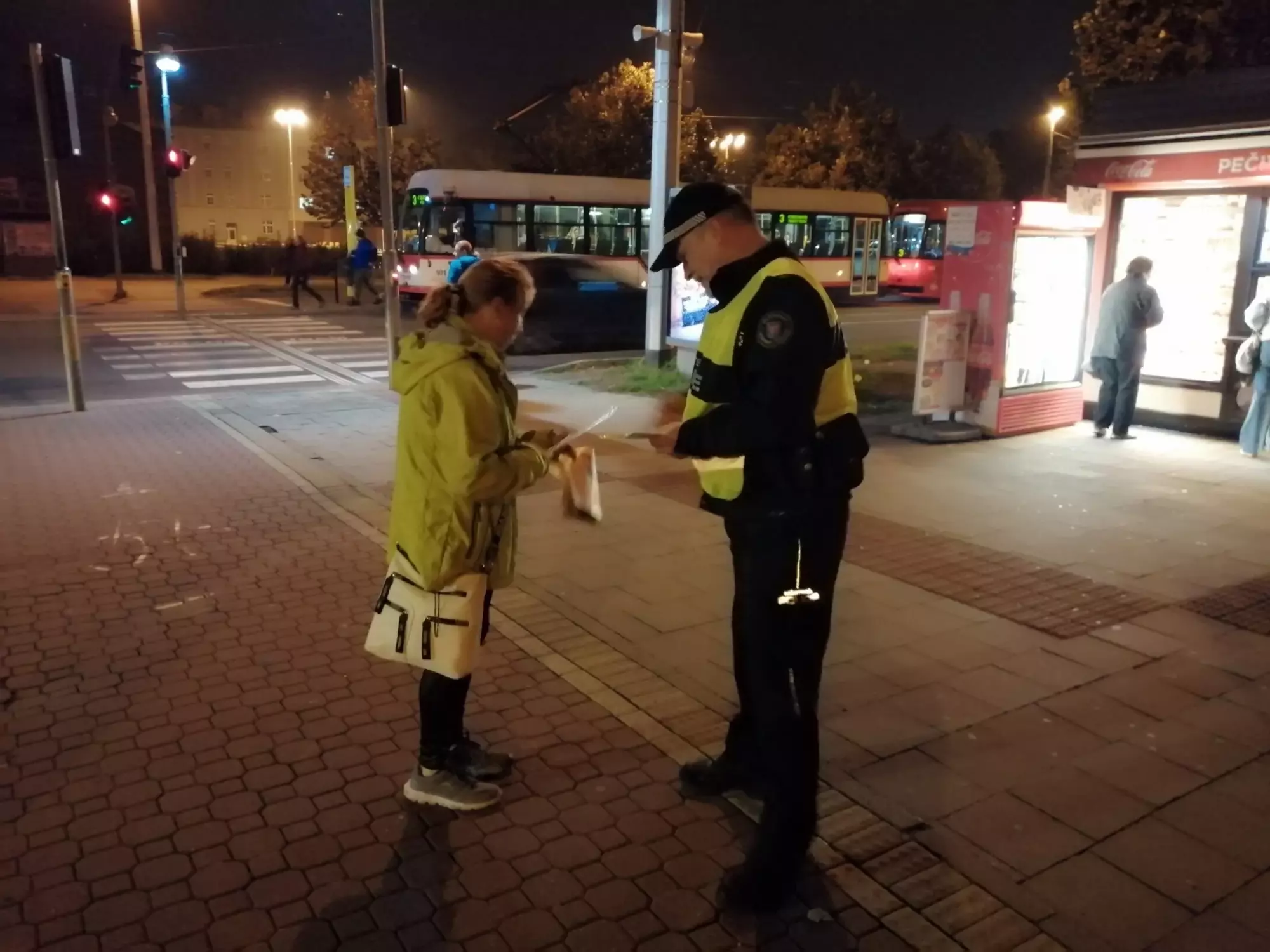 Právě v tomto období by měli chodci a cyklisté myslet více na své bezpečí při pohybu na pozemních komunikacích. Z tohoto důvodu jsme dnes ještě za tmy vyrazili na „staré“ autobusové nádraží a mezi padesátku těchto účastníku silničního provozu jsme rozdali reflexní pásky. Povinnost chodce mít na sobě prvky z retroreflexního materiálu se sice vztahuje na místa mimo obec, ale určitě se najdou i ve městě lokality, které jsou hůře osvětlené, a mohlo by zde dojít ke kolizní situaci s motorizovanými účastníky silničního provozu. Apelujeme proto na chodce a cyklisty (i koloběžkáře), aby při pohybu v silničním provozu využívali reflexních doplňků a zvýšili tak svoji viditelnost.