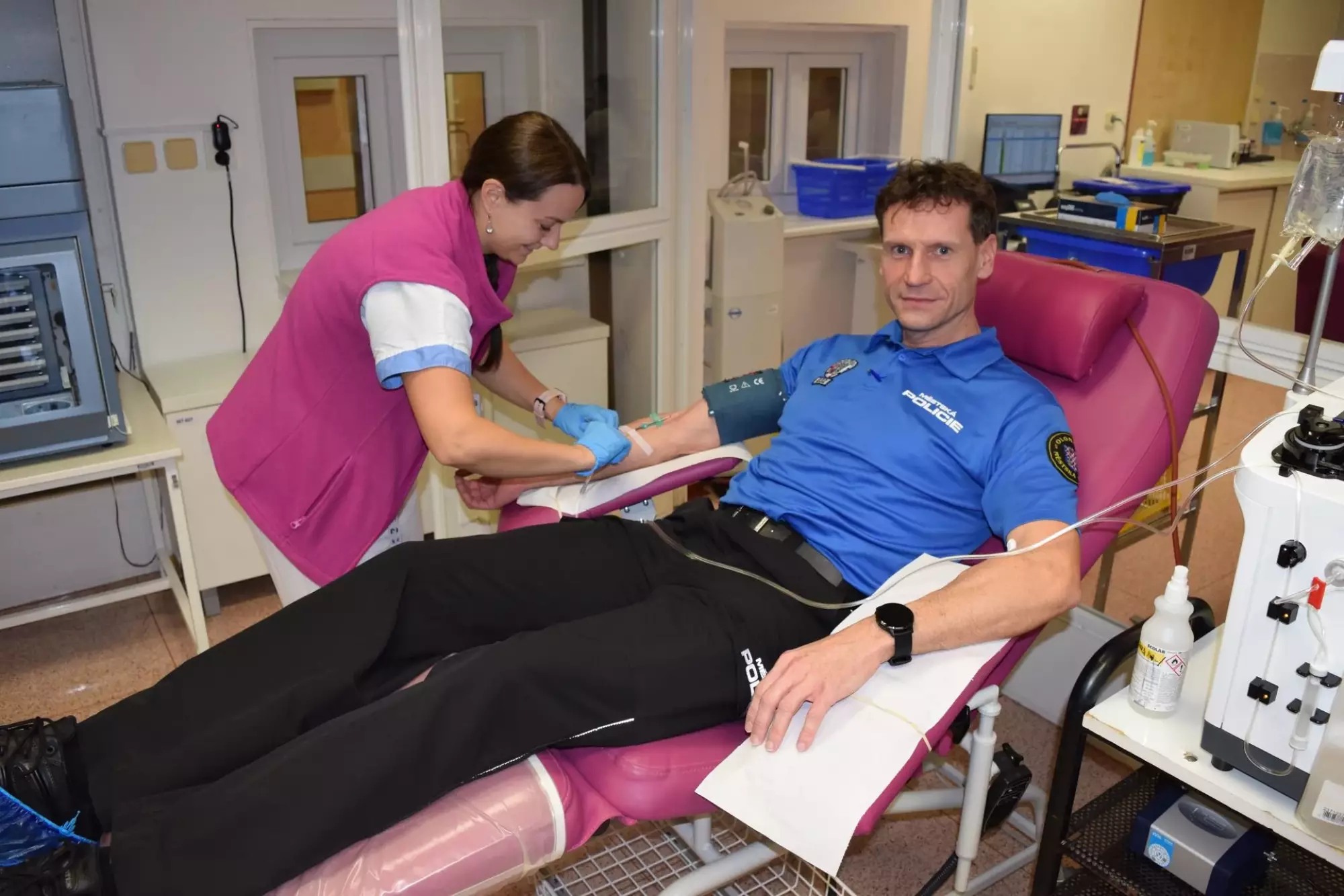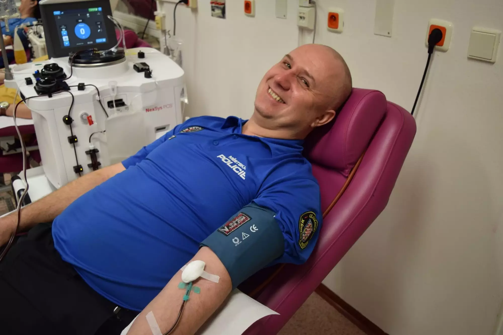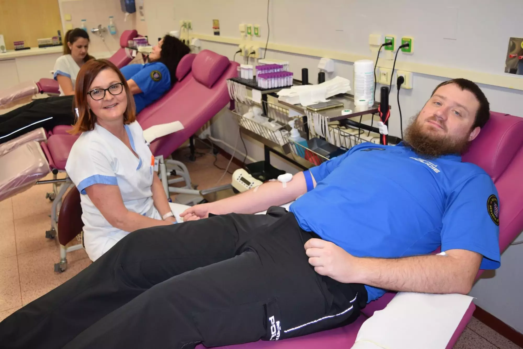 Ve středu ráno se to na Transfuzním oddělení Fakultní nemocnice Olomouc hemžilo uniformami, jelikož opět po roce šli olomoučtí strážníci hromadně darovat krev.