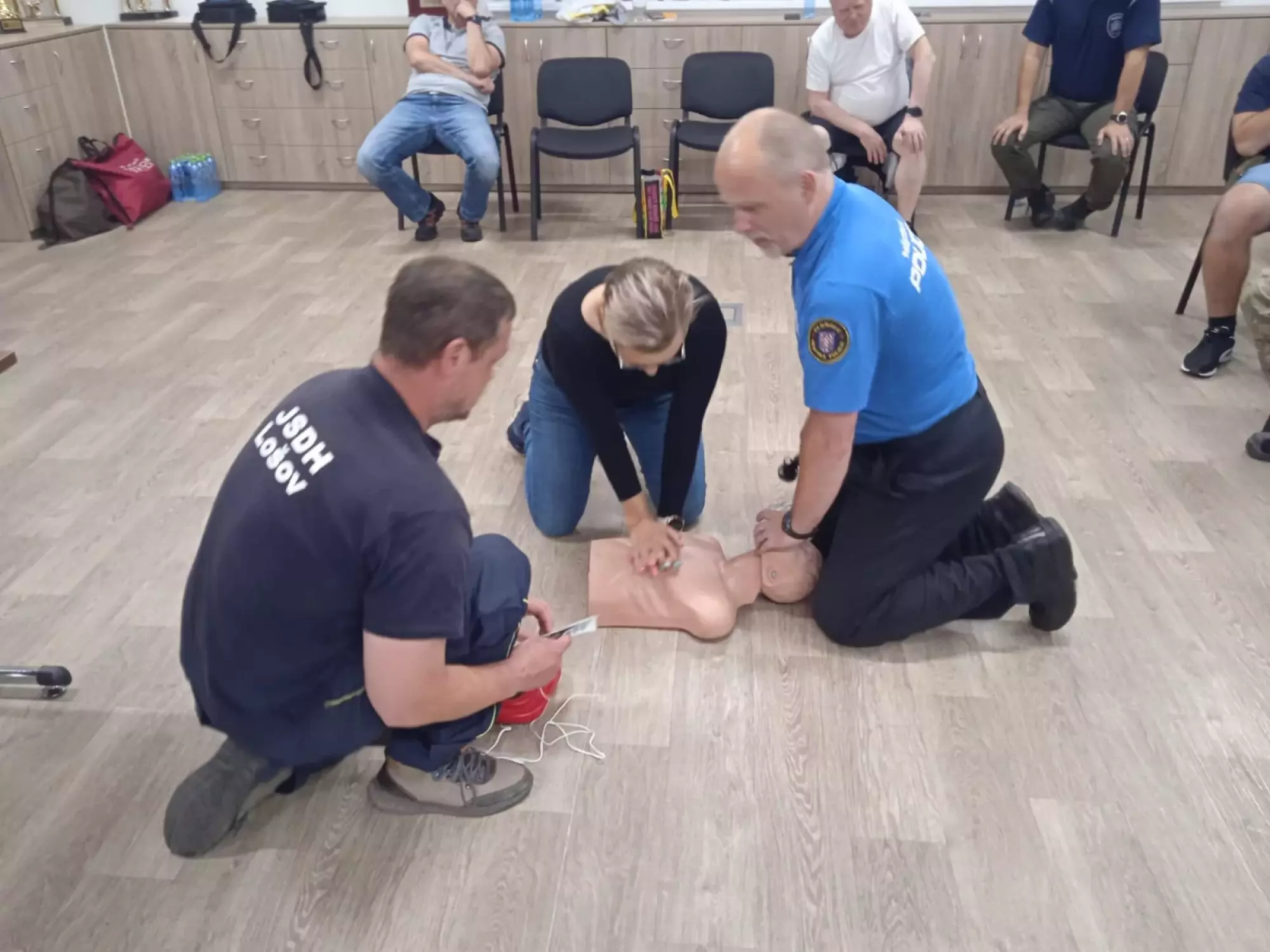 Právě dostupnost tohoto přístroje v budovách olomouckého magistrátu a u jednotek SDH spadajících pod statutární město Olomouc byla důvodem proškolení pracovníků ostrahy a dobrovolných hasičů v jeho používání. Pro samotné účastníky byl připraven, pod záštitou našeho kolegy, který je mimo jiné i členem České resuscitační rady, několikahodinový blok čítající nejprve teoretickou část a následně praktickou část. Ta byla zaměřena na samotné použití přístroje v praxi. Desítky účastníků z řad ostrahy a z osmi jednotek dobrovolných hasičů si vyzkoušely kompletní resuscitační postupy, včetně použití ambuvaku, kterým se dá nahradit vlastní dechová činnost nedýchajícího pacienta. Všichni účastníci kvitovali samotnou úroveň školení, včetně získaných, jak teoretických tak praktických informací a postupů při zvládání situací vyžadujících použití AED.