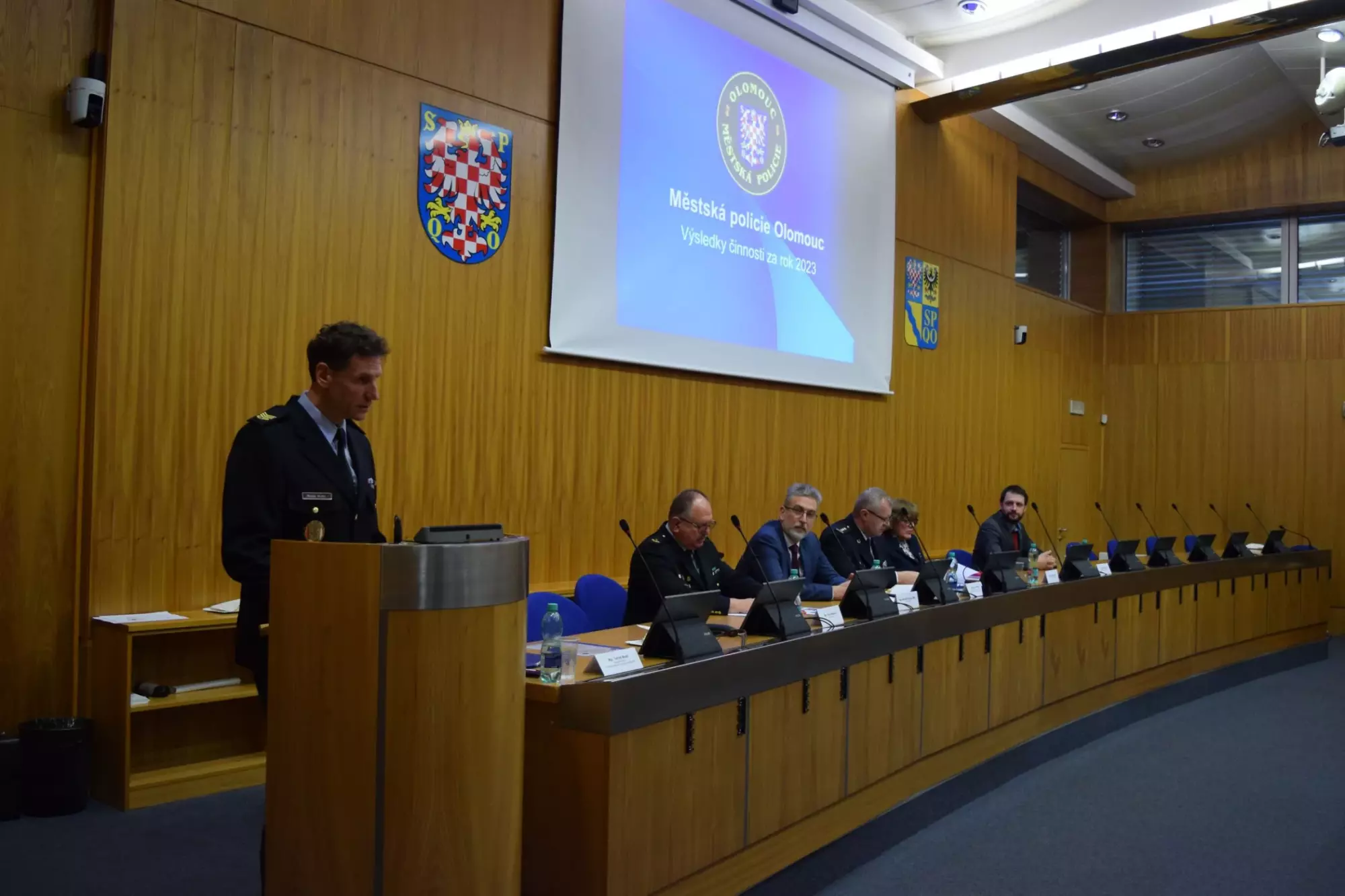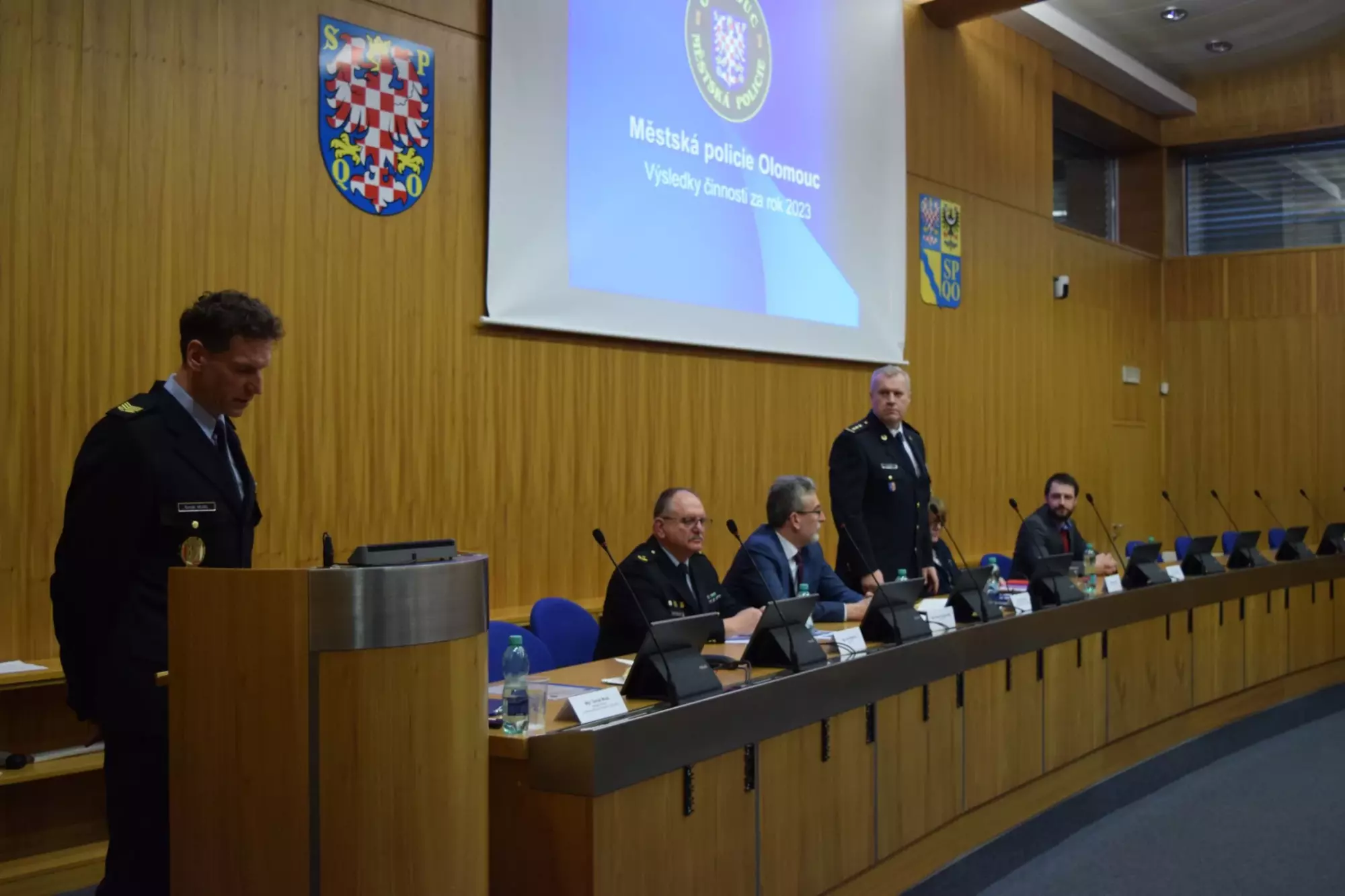 V další částí výročního shromáždění pozdravil také přítomné strážníky ředitel Územního odboru Olomouc Policie České republiky plk. Mgr. Jiří Musil, MBA., který zhodnotil rok 2023 z pohledu participace zejména na bezpečnostních opatřeních, ale i spolupráce při standardním výkonu služby a dále vyzdvihl důležitost Městského kamerového dohlížecího systému, jakožto významného prvku při odhalovaní trestné činnosti.