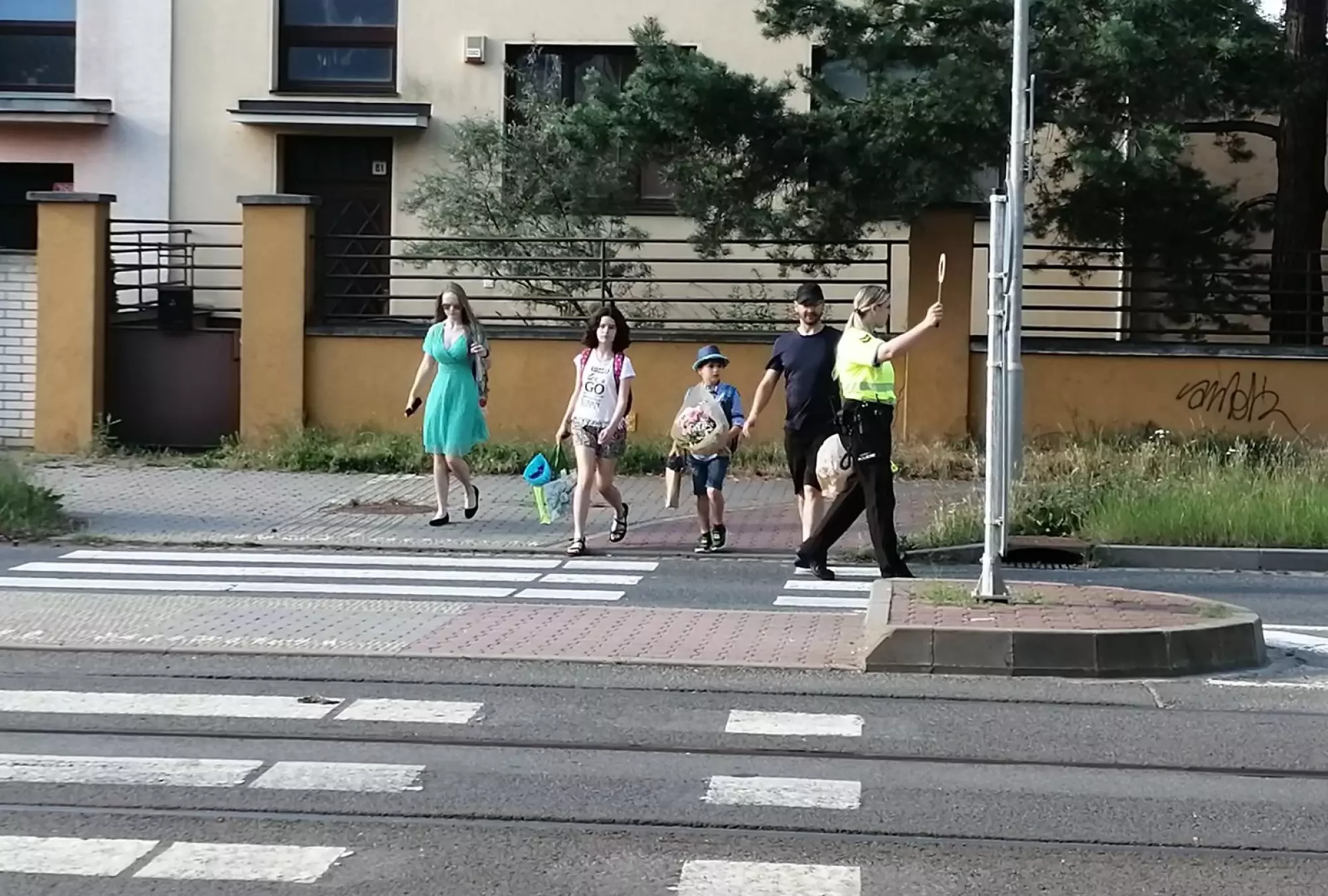 Hlídky také, zejména menším dětem, připomínaly základní pravidla bezpečného chování v silničním provozu, jelikož mnohé z dětí už byly myšlenkami na letních prázdninách a nevěnovaly přecházení přechodu pro chodce dostatečnou pozornost. Jako pozornost od strážníků také děti dostaly drobný prezent v podobě reflexního pásku. (Čun)