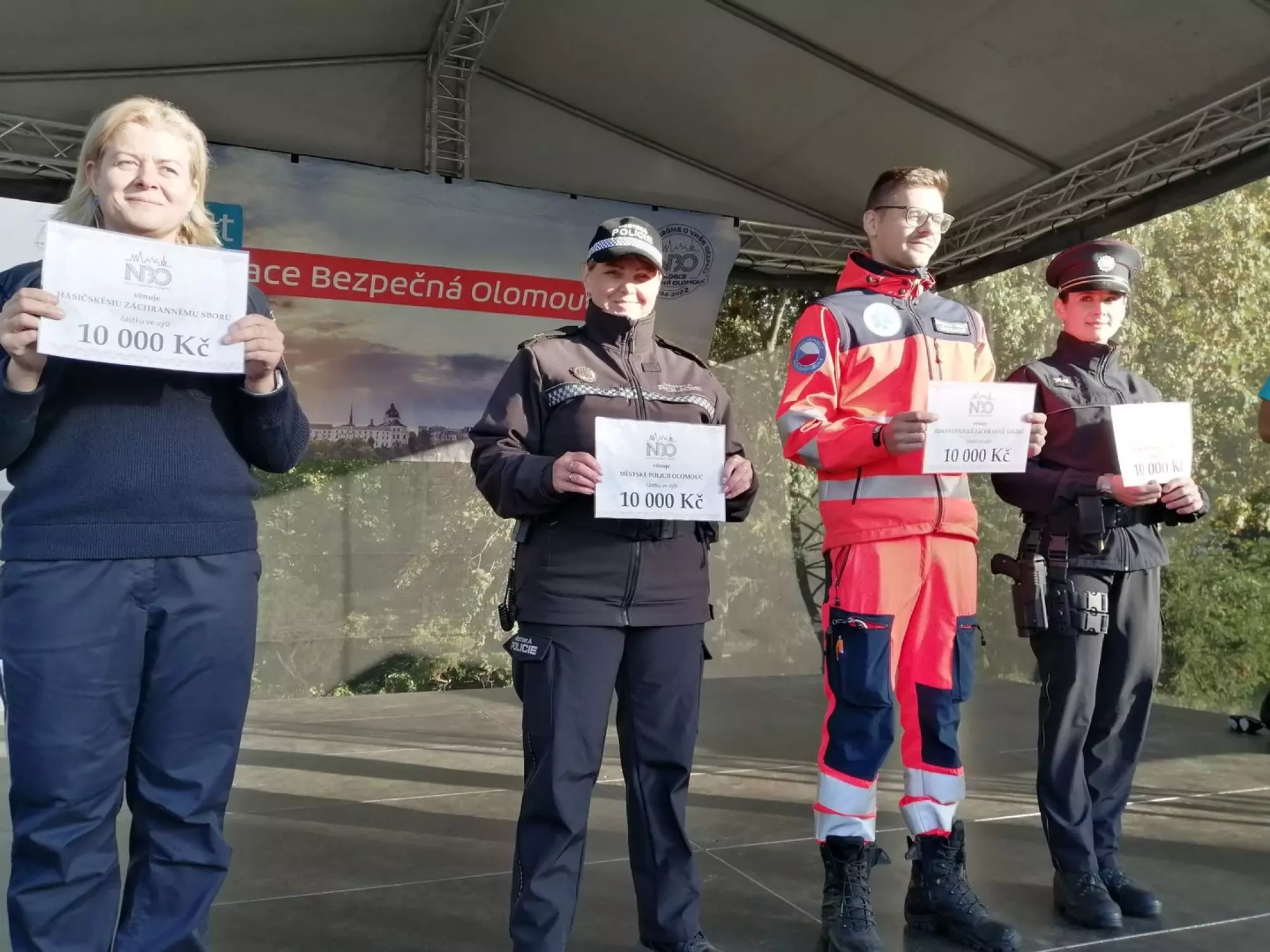I přes rozmary počasí se nakonec plocha výstaviště zaplnila davy návštěvníků a to zejména v druhé polovině akce. Odpolední program byl plný nejen ukázek volnočasových aktivit, ale zejména ukázek z činnosti složek Integrovaného záchranného systému. Ve stánku Městské policie Olomouc děti plnily úkoly související zejména s dopravní tématikou, ale také skládaly na rychlost nábojnice, vyzkoušely si poutací trenažér nebo střílely na laserové střelnici. Pro dospěláky byly největším tahákem brýle simulující požití alkoholu a drog a to ve čtyřech variantách. Tradiční závěr celé akce obstaral MUDr. Mgr. Ivan Langer, který předal všem zástupcům zúčastněných složek šeky na deset tisíc korun.