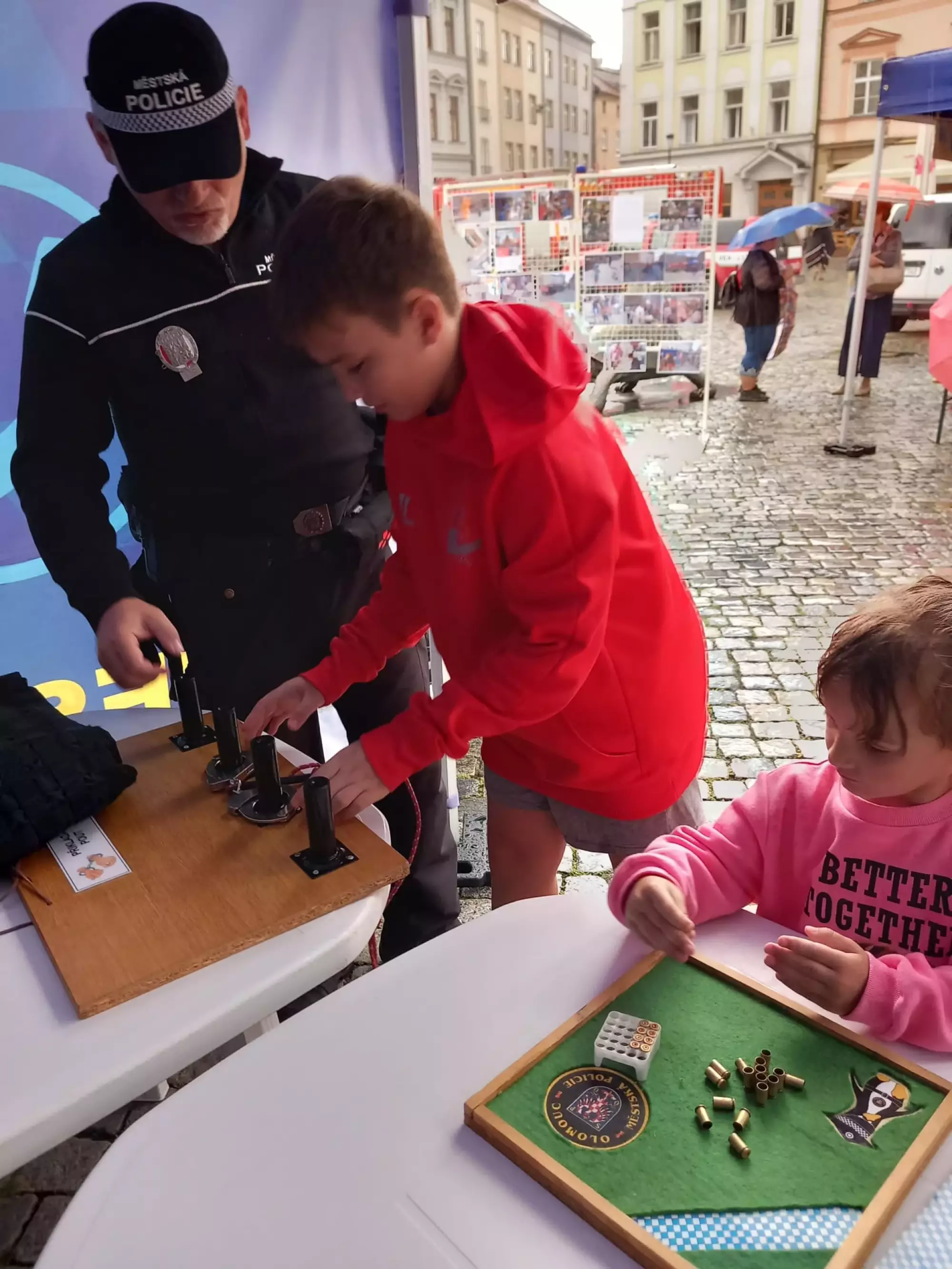 Pro návštěvníky všech věkových kategorií byl v úterý odpoledne připraven bohatý program ze strany hasičů a městské policie. Dobrovolní hasiči měli pro návštěvníky připravenou ukázku požární techniky, vozidel a v rámci dynamických ukázek proběhla soutěž družstev v disciplíně hasičský útok. V našem preventivním stánku si děti mohly vyzkoušet různé soutěže, kvízy a poutací trenažér. Velký zájem veřejnosti patřil i vystavené balistické vestě a protiúderové přilbě.