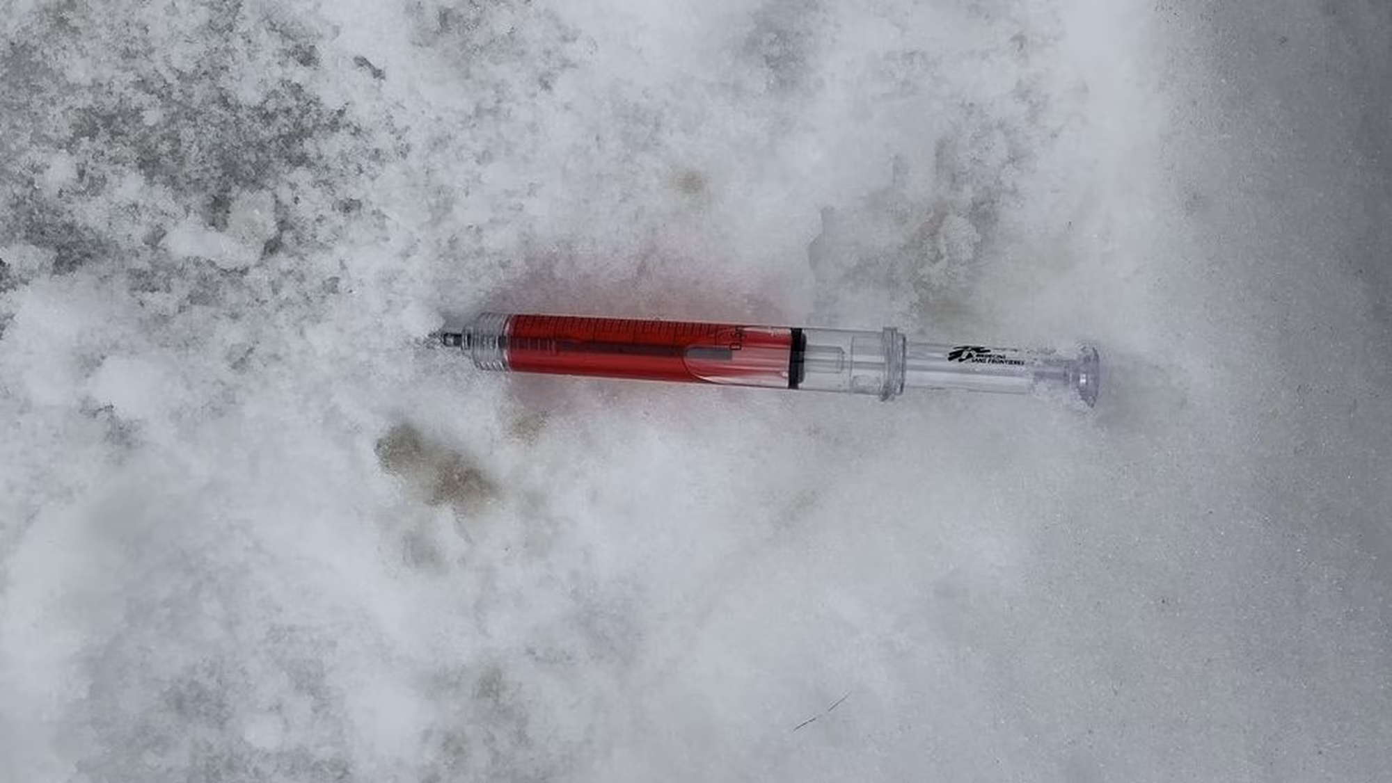 Včera po poledni jsme přijali oznámení, že před domem na ulici Tomkova se ve sněhu nachází pohozená injekční stříkačka s neznámou tekutinou uvnitř.