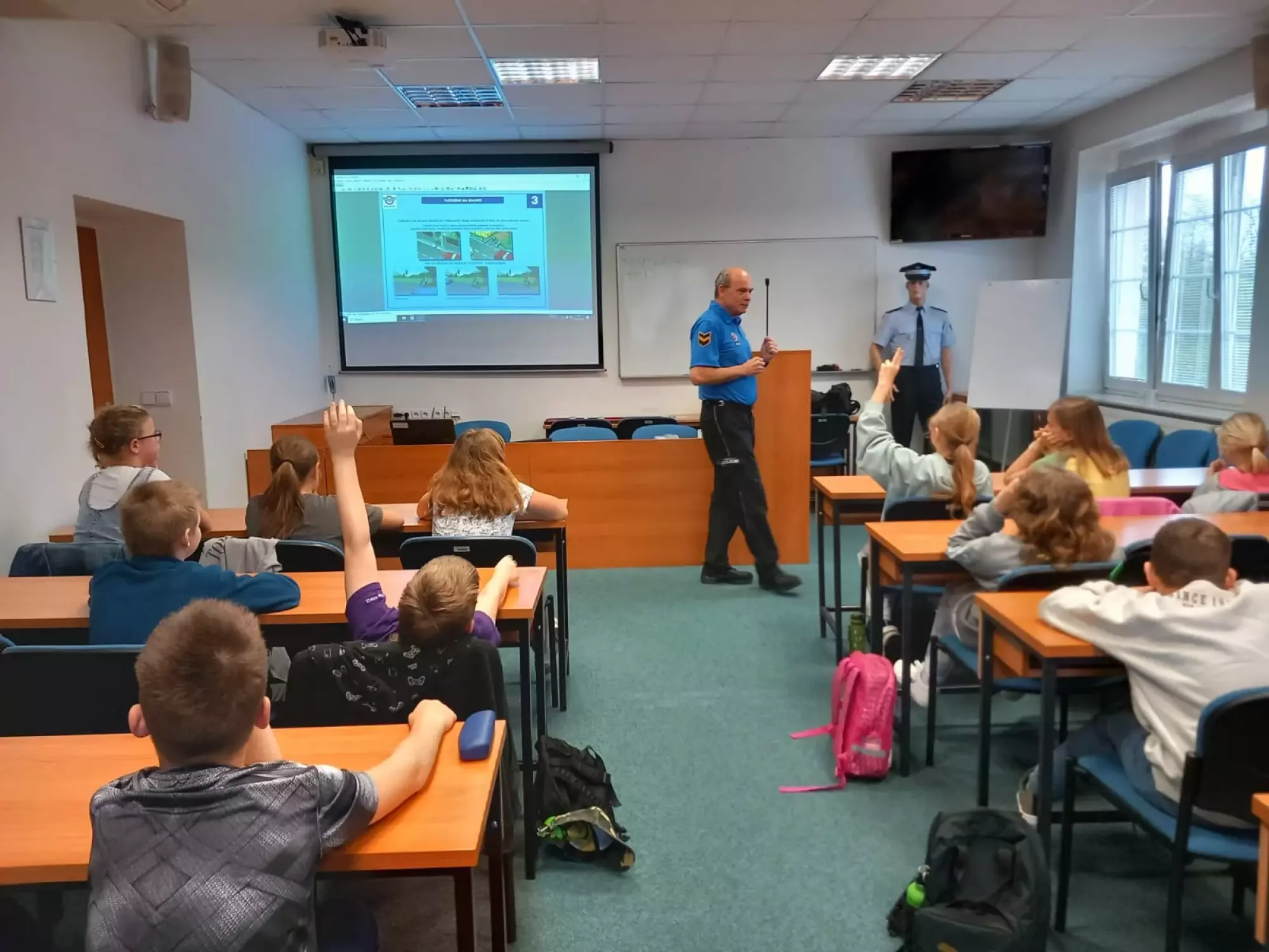 Děti nejprve absolvovaly exkurzi na pracovišti kamerového systému, kde je nejvíce zaujala video stěna. Následně pro ně byly připraveny preventivní besedy. Pro žáky první, druhé a třetí třídy byla beseda zaměřena téma osobního bezpečí (včetně části obsahující dopravní problematiku), tísňové linky a nemohla chybět ani část, kde jsme dětem představili jednotlivé prvky uniformy a výstroje. Se staršími školáky jsme probrali bezpečné chování v silničním provozu z pohledu chodce a cyklisty a další část besedy byla věnována problematice šikany a to zejména v kyberprostoru. Na konci besed byla vždy pro děti připravena část, na kterou se všichni žáci těšili od samotného rána. A to zkoušení protiúderového kompletu, skládání nábojnic na rychlost, puzzle s policejní tématikou nebo střelba na laserové střelnici. Samotný závěr pak již obstarala venkovní prohlídka služebního auta a po tomto jsme se již s výletníky rozloučili.