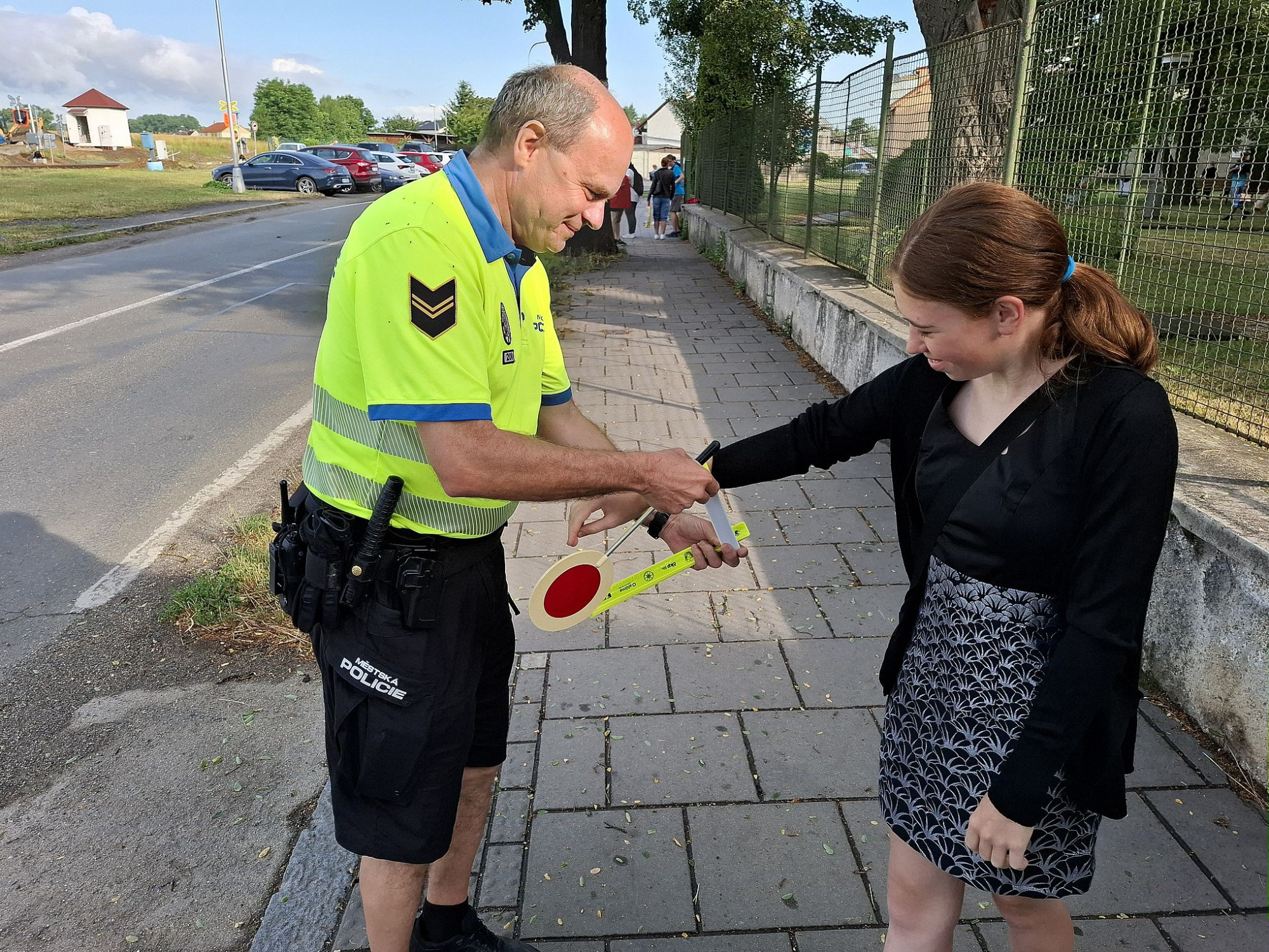 Hlídky také, zejména menším dětem, připomínaly základní pravidla bezpečného chování v silničním provozu, jelikož mnohé z dětí už byly myšlenkami na letních prázdninách a nevěnovaly přecházení přechodu pro chodce dostatečnou pozornost. Jako pozornost od strážníků také děti dostaly drobný prezent v podobě reflexního pásku.